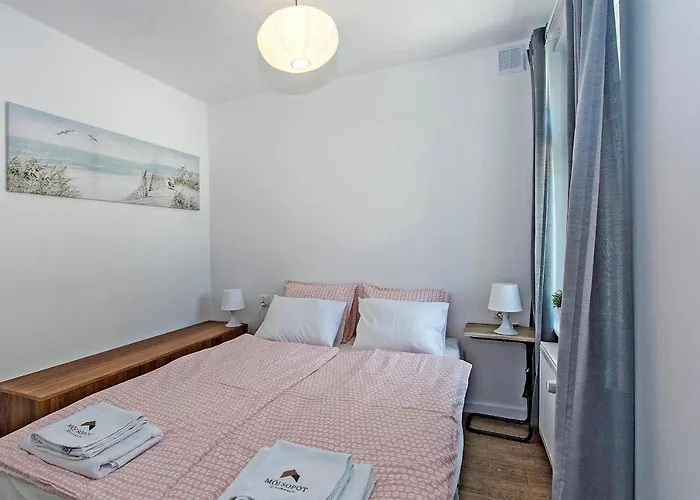 Die 40 m² große Ferienwohnung Promenada Moj-Sopot Pl empfängt Reisende im Zentrum von Zoppot, in einer Entfernung von 17 Minuten zu Fuß von AWAY der Molo von Sopot entfernt. Für die Gäste, die mit dem Auto anreisen, bietet das 1-Zimmer-Apartment öffentliche Parkplätze in der Nähe.